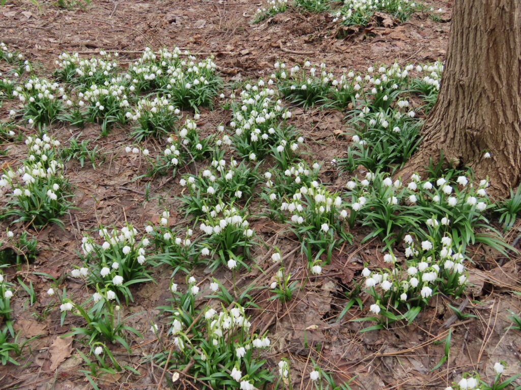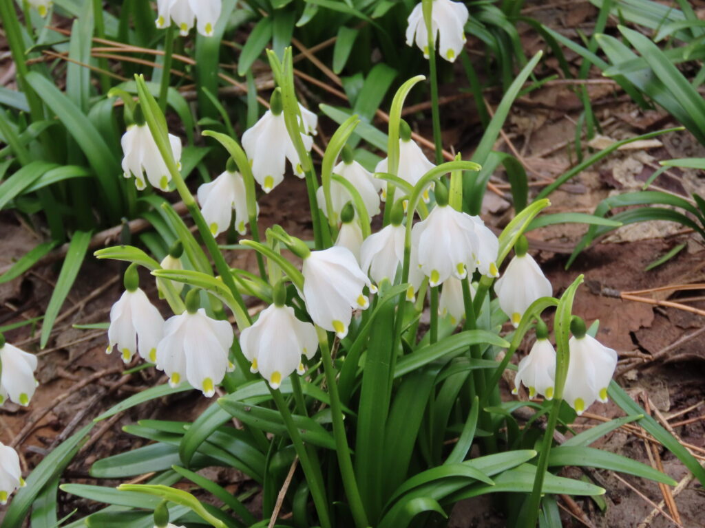 スプリング・スノーフレーク雪が溶けるのを待っていたかのように咲く。場所を知っている人たちには人気があるという。
