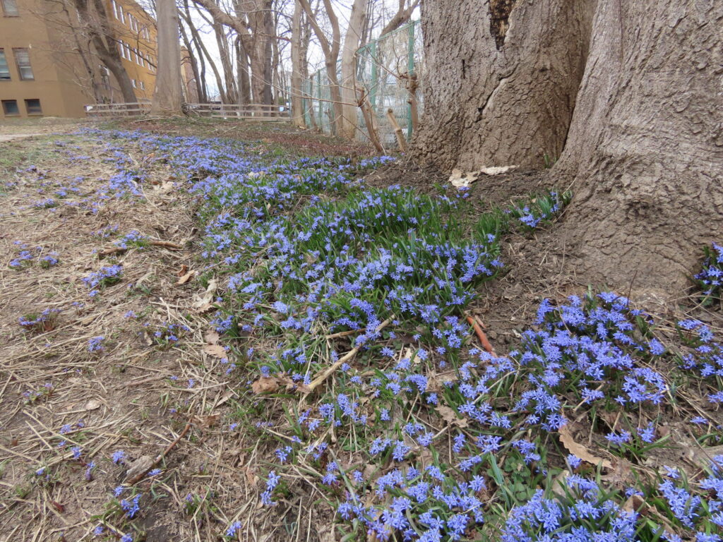 北大構内には雪解けからたくさんの花が見られるが、いちばん早いのがこの2つだろう。